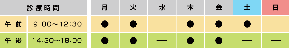 ※休診日は、日・祝、水曜日、土曜日午後です。