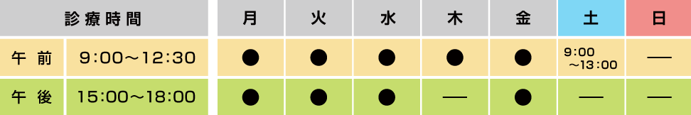 ※休診日…木曜日午後、土曜日午後、日曜日,祝日
